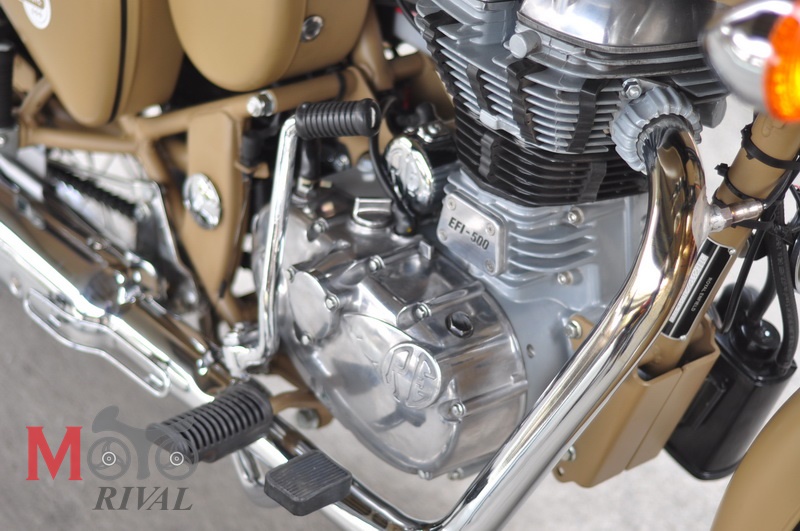 เครื่องยนต์ระบบหัวฉีด EFI 535cc สูบเดี่ยว ระบายความร้อนด้วยอากาศ มอบแรงม้า 29.1 bhp@5,100rpm และแรงบิด 44 Nm@4,000rpm นับเป็นเครื่องยนต์ที่มีขนาดใหญ่ที่สุด และแรงที่สุดของ Royal Enfield ถ่ายทอดกำลังผ่านเกียร์แบบ 5 Speed