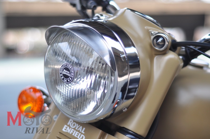 Classic 500 นี้ ใช้ไฟหน้าทรงกลมแบบ Tiger Eyes ที่มาพร้อมกรอบยื่นออกมาด้านบนดูคล้าย Eyeslid ตามแบบฉบับรถตระกูล Bullet และ Classic