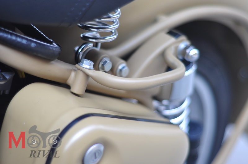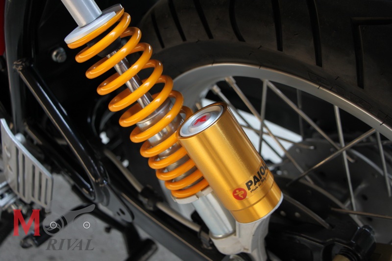 นอกจากนี้จะสังเกตุเห็นพักเท้าหลัง ซึ่งทำมาเพื่อรองรับกับการติดตั้งเบาะยาวซ้อน 2 อีกด้วย