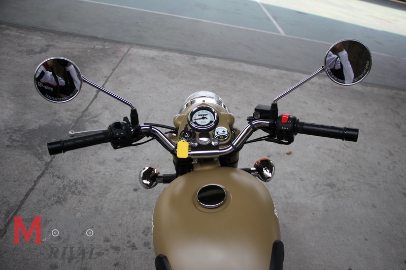 ไฟหน้าทรงกลม, เบาะแบบตูดมดมาให้ พร้อมด้วยแฮนด์ Clip On (แบบจับโช้คยึดแผงคอบน) ซึ่งปรับระดับได้ น่าเสียดายที่คันนี้ กระจกมองข้างถูกยึดที่ประกับบนตัวแฮนด์ ไม่ใช่แบบกระจกปลายแฮนด์ ซึ่งดูจะให้อารมณ์แบบ Café Racer มากยิ่งขึ้น