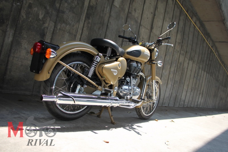 ในรุ่นนี้ เราพบว่ามันดูนิ่มนั่งสบาย และซับแรงดีกว่า Continental GT อย่างเห็นได้ชัด เนื่องจากใต้เบาะนั่งได้มีสปริง เสริมเพื่อรองรับแรงกระแทกเพิ่มเข้ามา อารมณ์โดยรวมของช่วงล่าง Classic 500 นี้ให้ความผ่อนคลาย เหมาะแก่การขี่ชิลๆ เพื่อลาดตระเวนในกองทัพเสียจริงๆ หรือจะเอาไปขี่แถบชายหาดทะเลทราย ก็ดูจะเข้าทีไม่น้อย