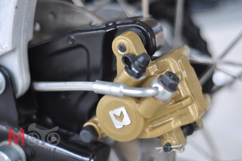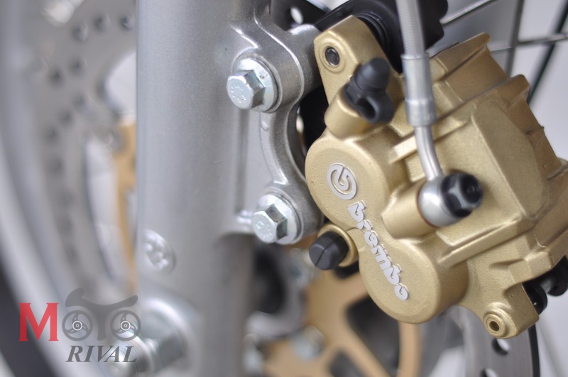 ระบบเบรก ด้านหน้าใช้จานดิสก์ขนาดใหญ่ 300 มม. พร้อมปั๊มเบรก Brembo 2 ลูกสูบ และจานหลังขนาด 240 มม. ปั๊มเบรกหลังเป็นของแบรนด์ลูก Brembo นั่นคือ Bybre 1 ลูกสูบ