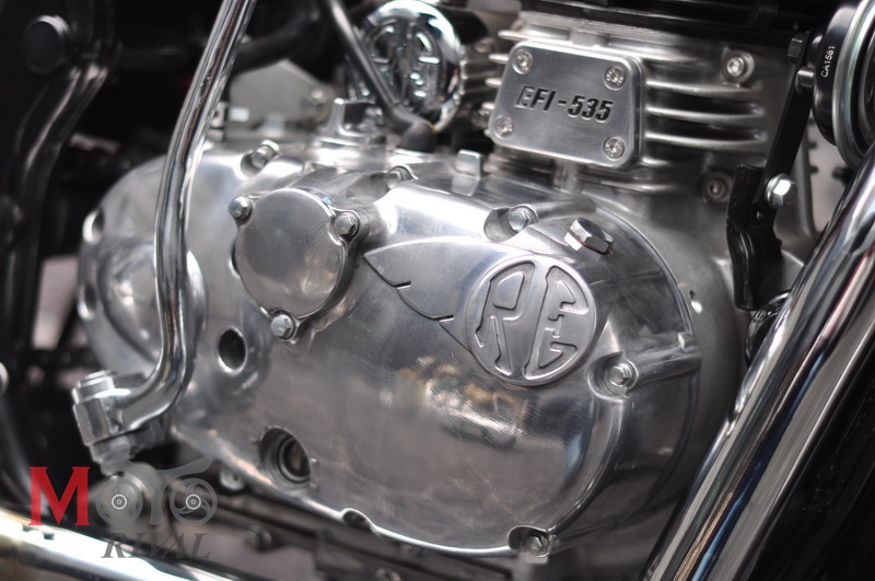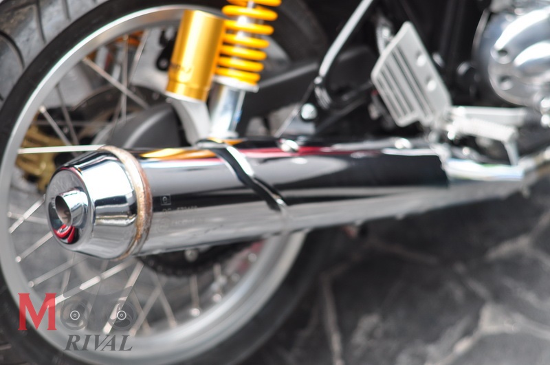 แคร้งเครื่องยนต์ด้านข้างชุบโครเมี่ยม เช่นเดียวกับท่อไอเสีย ซึ่งให้ความเงาดูสง่า