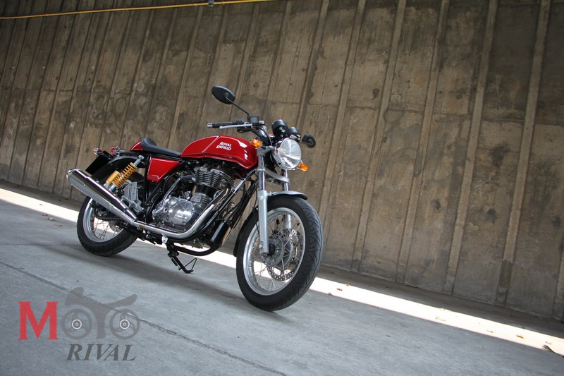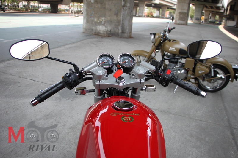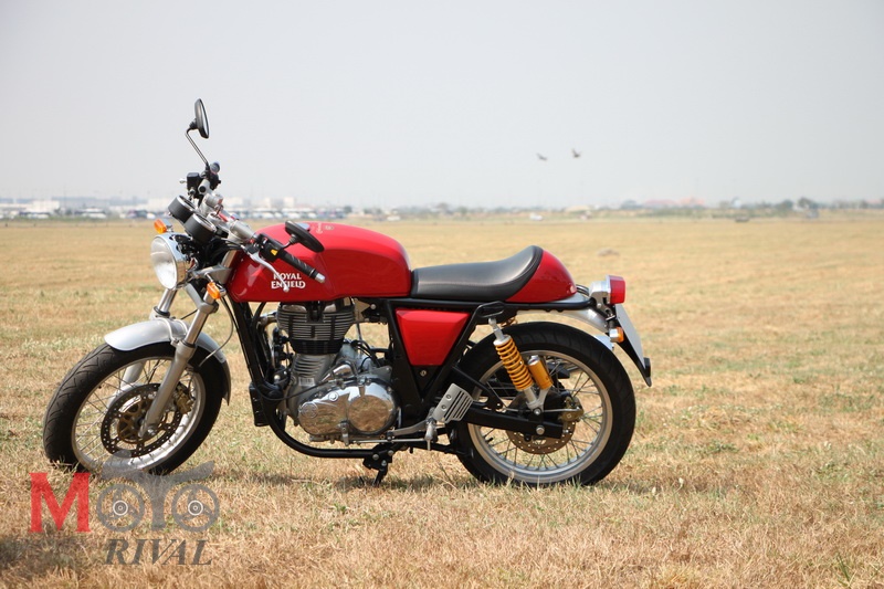 เริ่มด้วยรถคันแรกที่เราทดสอบ Royal Enfield Continental GT ซึ่งนับได้ว่าเป็นรถจักรยานยนต์ที่เบาที่สุด เร็วที่สุด และทรงพลังที่สุดของ Royal Enfield