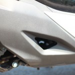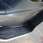 ขณะที่ตำแหน่งวางเท้า Burgman 400 ดูจะเอื้อต่อการนั่งเหยียดเท้าได้ดี เพราะเวลาเรานั่งร่นไปด้านหลังติด Back Support ตำแหน่งวางเท้าจะรู้สึกว่าเหยียดได้องศาพอดี นั่งเหยียดขาได้ไม่เมื่อย