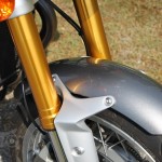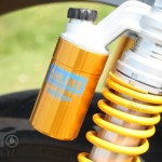 ระบบกันสะเทือน ด้านหน้า UpSideDown สีทองอร่างจาก Showa ขนาดแกน 43 มม. ปรับระดับได้ครบถ้วน ทั้ง Preload, Rebound, Compression มีระยะเคลื่อนตัว 120 มม. ด้านหลังโช้คอัพคู่จาก Ohlins มาพร้อมกระปุกแก้ส Piggy Back ปรับได้ครบถ้วน โดยปรับ Rebound และ Compression ง่ายๆ เพียงแค่ ใช้มือหมุนเท่านั้น
