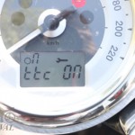 หน้าจอดิจิตอล ทางด้านซ้ายแสดงผล Odo และเซ็ททริป, เซ็ท TTC, บอกตำแหน่งเกียร์ ทาฝั่งขวา เกจ์น้ำมัน, Riding Mode, อัตราสิ้นเปลือง, ระยะทางคงเหลือที่วิ่งได้