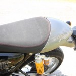 ในการขับขี่นั้น เราพบว่าการใช้โช้คอัพระดับ Hi-End นอกจากจะสวยดูดีมีราคาแล้ว ยังทำให้ Thruxton R เป็นรถคาเฟ่ที่ขี่สนุกมากที่สุดคันหนึ่ง กว่าคันไหนๆ ด้วยสไตล์ของโช้คอัพหลังคู่ ที่อาจจะไม่ได้ให้ความรู้สึกในการเข้าโค้งที่ดูเนียนคมกริบ แต่มันก็ให้ความรู้สึกที่หนักแน่น ทุกครั้งในช่วงที่โช้คอัพ Rebound คืนตัวจากการยุบ และซับแรงได้ดี แม้ช่วงล่างจะออกแนวสปอร์ต แบบติดแข็งนิดๆ ขณะที่การขี่ด้วยความเร็วสูงโช้คอัพหน้าแบบที่ใช้ในรถ Supersport สมรรถนะสูง ร่วมกับแฮนด์ Clip On จับใต้แผงคอที่ทำให้หน้าจิกต่ำ ส่งผลให้การขี่ความเร็วสูงๆนั้นหน้าไม่แกว่ง ไม่จำเป็นต้องไปติดกันสะบัดเพิ่มเติม