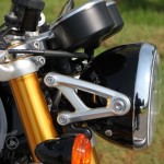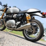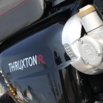 เริ่มกันที่ Triumph Thruxton R รถสไตล์ Café สุดหล่อ ในรุ่น R นี้จะมากับของระดับ Hi-End ที่เรียกได้ว่าเป็นรถในฝันของคอคาเฟ่ เลยก็ว่าได้ โดยคันนี้เป็นสีเงิน Silver Ice แบบเมทัลลิกเงางามโดดเด่น ทั้งรุ่น Thruxton R และ T120 จะใช้ไฟหน้า, ท้าย, เลี้ยวแบบเดียวกัน