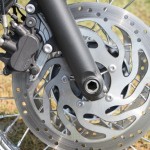 โดยรวมการทำงานของเบรก ถือว่าเป็นที่น่าพึงพอใจ การทำงานดูทันท่วงที เบรกดีกว่า Street Twin ที่ใช้จานดิสก์หน้าเดี่ยว ซึ่งในบางครั้งอาจต้องใช้ Engine เข้าช่วย หากคุณไม่ได้ลองขี่ Thruxton R มาก่อน มันจึงทำให้เห็นข้อแตกต่าง จากความละเอียดและน้ำหนักที่ดูแน่นยิ่งกว่า