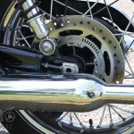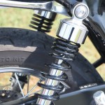 จานดิสก์หลังเดี่ยวขนาด 255 มม. คาลิปเปอร์ 2 สูบ Nissin น้ำหนักของปั๊มเบรกนั้นดูเบากว่าของ Thruxton R ที่ดูจะแน่นและหนืดกว่า