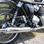 ท่อไอเสียทรง Pea Shooters ที่ชุบโครมตั้งแต่คอท่อยันปลาย เข้ากันกับแคร้งเครื่องยนต์, เพลท Triumph และมือจับหลัง