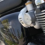 มาต่อกันที่ Triumph Bonneville T120 ซึ่งถือได้เป็นรถคลาสสิคแบบดั้งเดิม โดยถอดแบบรถดั้งเดิมแท้ๆ มาจาก 1959 Bonneville ปรับพัฒนาให้เป็นรถคลาสสิคร่วมสมัยยิ่งขึ้น ดูเผินๆ รูปทรงอาจจะคล้ายกับ T100 แต่ T120 จะเห็นหม้อน้ำวางยาวอยู่เป็นตระหง่าน และการใช้จานดิสก์หน้าคู่ นั่นจึงทำให้รถคันนี้ดูทรงพลังยิ่งกว่าเดิม