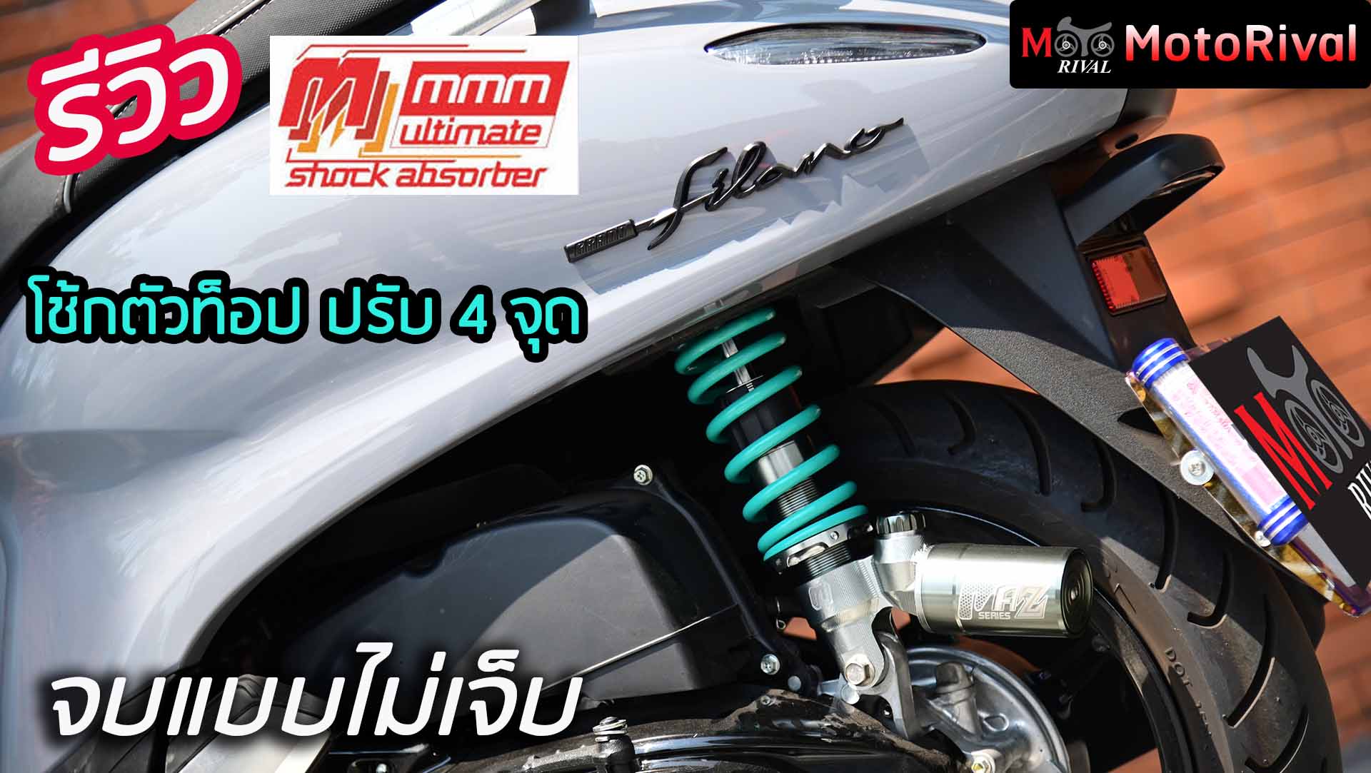 รีวิว โช้กแต่งตัวท็อป “จบแบบไม่เจ็บ” Ultimate MMM Maz Series โช้กอัพแบรนด์ไทย 100% ตัวท็อป ปรับได้ 4 จุด ในงบเบาๆ สำหรับ รถ AT ที่มีโช้กหลังเดี่ยว แบบ Unit Swing อาทิ GIORNO, Grand Filano, Lead, Scoopy, Fazzio ฯลฯ