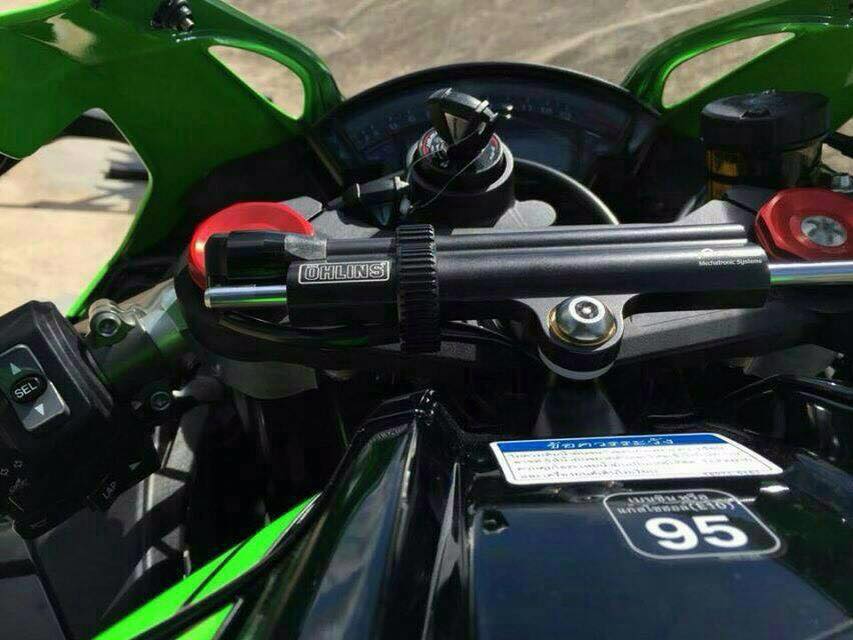 ภาพที่ 2 กันสะบัดจาก Ohlins และ สติกเกอร์บนถังน้ำมัน ข้อควรระวังฯ กับ เบนซิน หรือ แก๊สโซฮอล์ E10 (95)