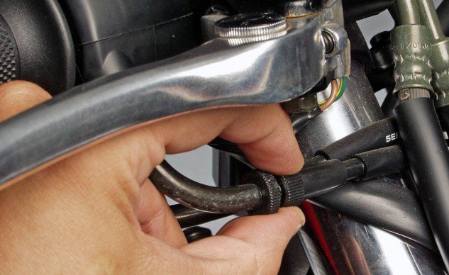 หากพบว่าระยะฟรีของคันเร่งนั้น สมควรที่จะต้องปรับตั้งใหม่ ให้เริ่มจากการคลายน็อตล็อคสายคันเร่ง ซึ่งจะอยุ่ใกล้กับประกับคันเร่งด้านบน สำหรับรถเล็กนั้นส่วนใหญ่จะมีสายคันเร่งเพียงสายเดียว แต่ในรถระดับ 150cc ขึ้นไปมักจะใช้คันเร่งแบบสองสาย