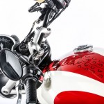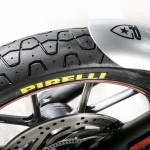 Triumph Street Twin Pirelli คันนี้ ซึ่งจะเป็นการย้อนตำนานของ Bonneville 1977 โดยใช้สีลายถังน้ำมันแบบทูโทน ขาว-แดง และนี่คือปีเกิดของยาง Pirelli PHANTOM Sportscomp นี้ด้วย