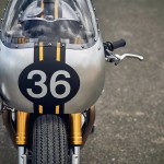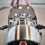 Triumph Thruxton R คันนี้ได้ตกแต่งให้เป็นรถ Café Racers แบบ Full Faring ขนานแท้ Barbour International, ล้อซี่ลวดขอบดำขนาดใหญ่ สวมยาง Firestone Champion, แฟริ่งเป็นอลูมีนัม งาน handmade, ไฟหน้ากลม ถูกติดตั้งเยื้องไปทางด้านขวา, handbar ใหม่ ต่ำและกว้างกว่าเดิม, ตรงกลางถังน้ำมันได้ตกแต่งด้วยเข็มขัด Jacket Belt, เบาะหนังงาน Handmade ชิ้นใหม่, ท่อไอเสียทรง megaphones, เบาะแบบตูดมดงานอลูมีนัม handmade, ไฟท้ายแต่ง LED
