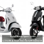 “Vespa Rosso Sport Series” นับเป็นการเลือกโมเดลรถพรีเมี่ยมสกู๊ตเตอร์เวสป้ารุ่นที่ได้รับความนิยมในหมู่แฟนเวสป้าชาวไทยสองรุ่นจากสุดยอดโมเดลรถรุ่นอื่น ได้แก่ “Vespa GTS150 3Vie” และ “Vespa S125 3Vie” โดย “Vespa GTS150 3Vie” มาในเฉดสีเงินสง่า (Grigio Seta) เสริมสร้างดุลยภาพประสานปรองดองระหว่างผู้เป็นเจ้าของและรถเวสป้าคู่ใจได้เป็นอย่างดี จุดเด่นพิเศษนอกเหนือจากสมรรถนะขั้นสุดและความสามารถในการประหยัดน้ำมันเชื้อเพลิงดีเยี่ยมกับเครื่องยนต์หัวฉีดอิเล็กทรอนิกส์ 4 จังหวะ 3 วาล์ว ขนาด 150 ซีซี นั้นคือเบาะหนังสีแดงเข้มสุดหรูพร้อมเส้นสายสีแดงสดข้างตัวรถ เสริมลุคความเป็นผู้ชาย Sport Luxe ได้อย่างลงตัว สนนราคา 142,900 บาท