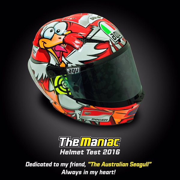 ซึ่งหากใครได้ดูการแข่งขัน 2015 AustralianGP น่าจะยังจำกันได้ที่ Iannone ได้ขี่รถชนนกนางนวล ขณะเป็นผู้นำในช่วงต้น ในหมวกใหม่นี้ทาง Iannone จึงได้ใช้หมวกลายนกนางนวล ซึ่ง เป็นการระลึกถึงเจ้านก Seagull ที่ตนเองได้ชนไปขณะที่เป็นผู้นำ ณ สนาม AustralianGP 2015