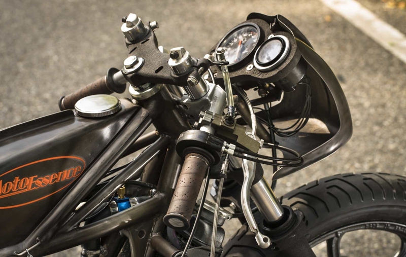 รถมอเตอร์ไซค์ Street Café สุดแนวที่เพื่อนๆกับกำลังเห็นอยู่ตอนนี้ ใช้พื้นฐานตัวรถจาก Yamaha รุ่น RD350 มอเตอร์ไซค์เครื่องยนต์ 2 จังหวะยุคปี 1990 โดยฝีมือการสร้างจากทีม Moto Essence ในประเทศเยอรมัน