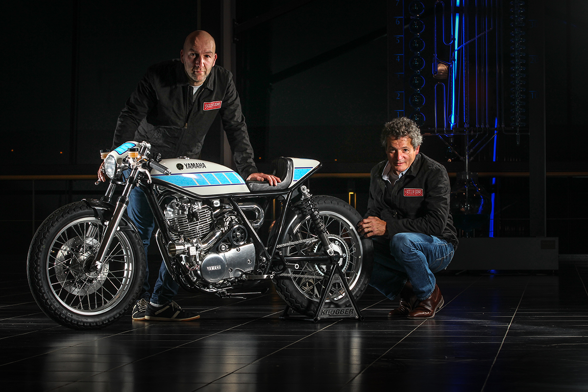 Fred Krugger Bertrand คือผู้ออกแบบเจ้า SR400 คันนี้ ที่ได้รับแรงบันดาลใจในการตกแต่งมาจาก Yamaha TZ ที่เคยเข้าร่วมแข่งขันในรายการ MotoGP ยุคปี 70 ซึ่งส่วนนึงของแนวคิดนี้มาจากเพื่อนสนิทของเค้า Bernard Ansiau ที่เป็นหนึ่งในทีมช่างให้กับ “The Doctors” Valentino Rossi