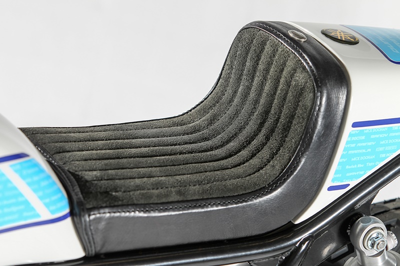 จบงานด้วยการสาดสีขาว คาดลาย Yamaha Racing สุดคลาสสิคโทนน้ำเงินฟ้าที่มีชื่อว่า Speed Block ก็เป็นอันเสร็จสมบูรณ์สำหรับเจ้า “Yard Built” Yamaha SR400 Krugger คันนี้