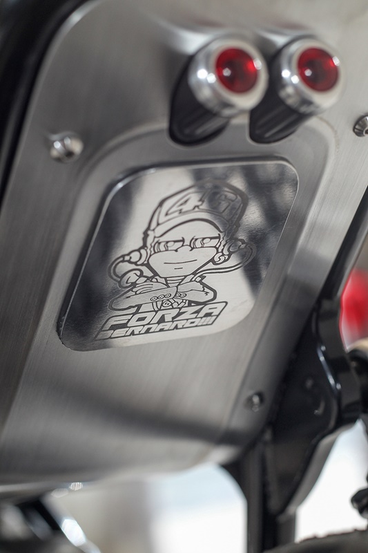 โคมไฟหน้า แผงหน้าปัท์ม ชุดแฮนบาร์ แผงคอ ประกับคันเร่งด้านขวา ประกับสวิทช์ด้านซ้าย ปลอกแฮนด์ ถูกเปลี่ยนใหม่ทั้งหมด รวมไปถึงถังน้ำมันของเดิมก็ถูกถอดออกไป แล้วนำถังน้ำมันใบใหม่ที่มีรูปทรงผมยาวกว่าปกติเข้ามาใส่แทนที่ เบาะนั่งตอนยาวใบเดิมถูกเปลี่ยนให้เป็นแบบหนังกลับหลังสูงสำหรับผู้ขับขี่เพียงคนเดียว ปิดท้ายด้วยตูดมดทรงสูงที่มีเพลทสัญลักษณ์ “The Doctors” แปะอยู่ด้านล่าง