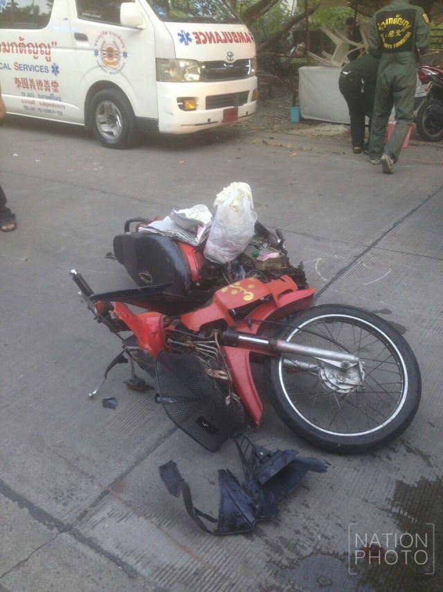 นอกจากนี้ เจ้าหน้าที่พบรถจักรยานยนต์ ขนาดเล็ก ติดตระกร้า สีแดง-ดำ เลขทะเบียน กกบ 789 กรุงเทพฯ โดยใกล้กันพบศพ นายเพเยาว์ บัวทอง อายุ 68 ปี นอนเสียชีวิต โดย ขาด้านขวาตั้งแต่หัวเข่าลงไปผิดรูป เกือบขาดออกจากกัน
